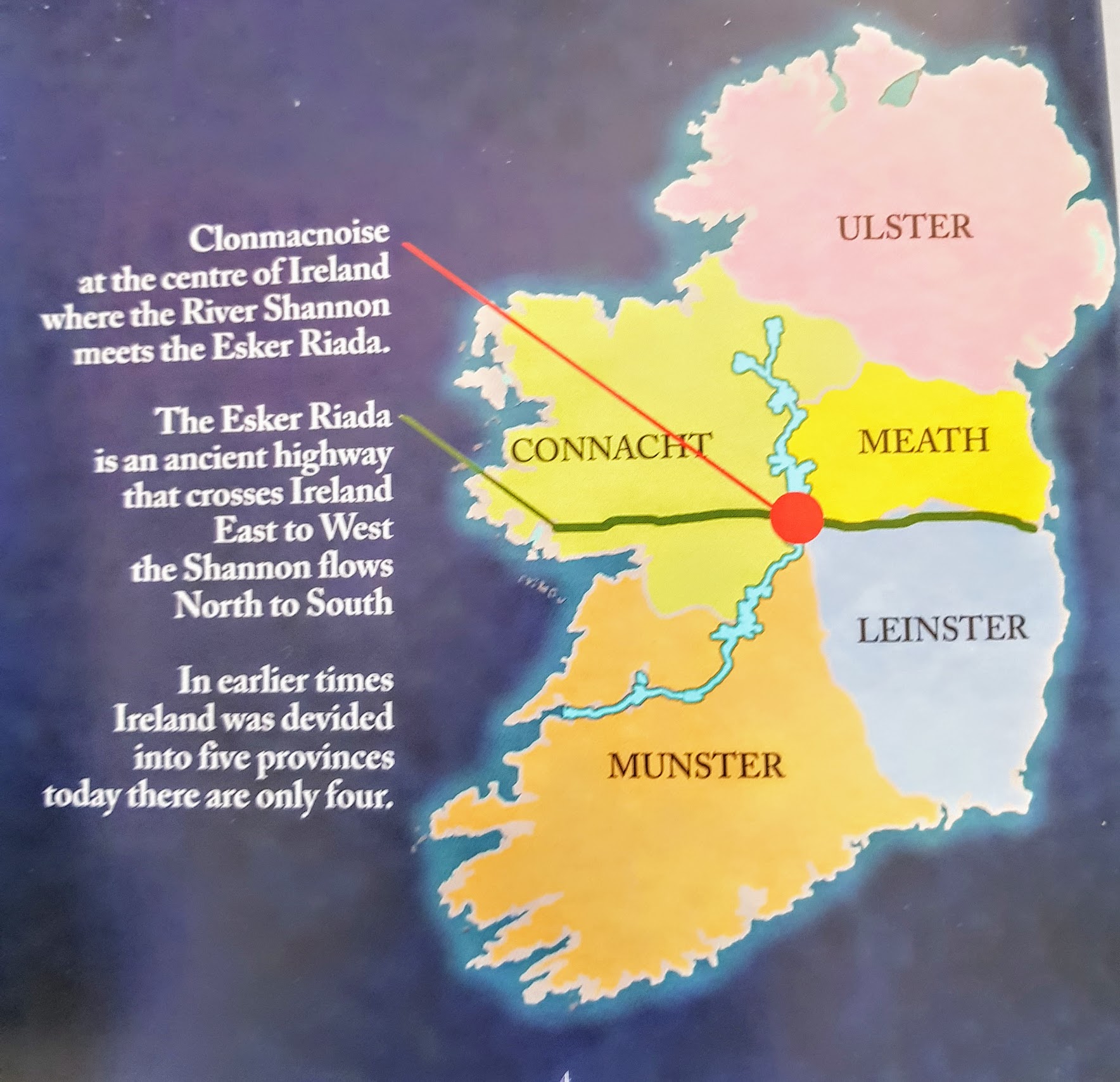 Au début du Moyen-Âge, le site monastique de Clonmacnoise a joué un rôle important dans l’évangélisation de l’Irlande. En gaélique, son nom signifie “la prairie des fils de Nos”. Fondé aux alentours de l’an 548 par Saint Cláran, son rayonnement s’est largement étendu au reste de l’Europe. La richesse et la profusion de ses édifices tiennent une place de choix dans cette étude car ils confirment l’héritage et l’importance d’une symbolique héréditaire s’enchaînant au fil du temps. À ce propos, René Guénon fait remarquer que “les éléments celtiques subsistants ont été pour la plupart, au moyen-âge, assimilés par le Christianisme; la légende du “Saint-Graal”, avec tout ce qui s’y rattache, est, à cet égard, un exemple particulièrement probant et significatif.”